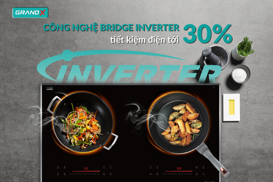 - Công nghệ biến tần Bridge Inverter, giúp bếp duy trì nhiệt ổn định mà không tắt/mở liên tục, giảm tiêu thụ điện lên đến 30%.