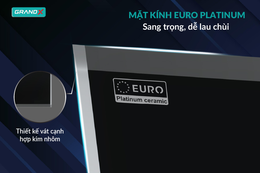 - Mặt kính EURO Platinum cao cấp, chịu nhiệt, chống trầy xước, đảm bảo độ bền vượt thời gian.