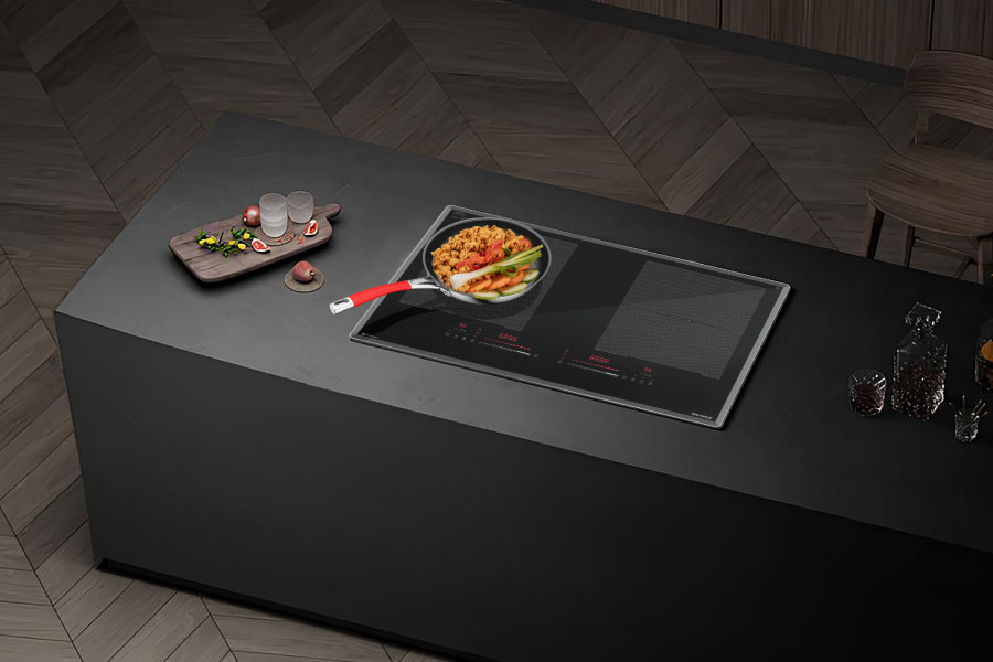 - Bếp gồm 2 vùng nấu cảm ứng từ, được trang bị mặt kính SCHOTT CERAN cao cấp, chịu lực, chịu nhiệt và chống trầy xước tối ưu.