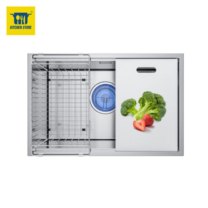 Toàn bộ chậu được làm từ Inox SUS304 18/8, loại thép không gỉ cao cấp chuyên dùng cho thiết bị nhà bếp. Lớp bề mặt xử lýBrushed SATIN chống ăn mòn giúp chậu luôn sáng bóng, không bị xỉn màu theo thời gian – kể cả trong môi trường ẩm ướt.