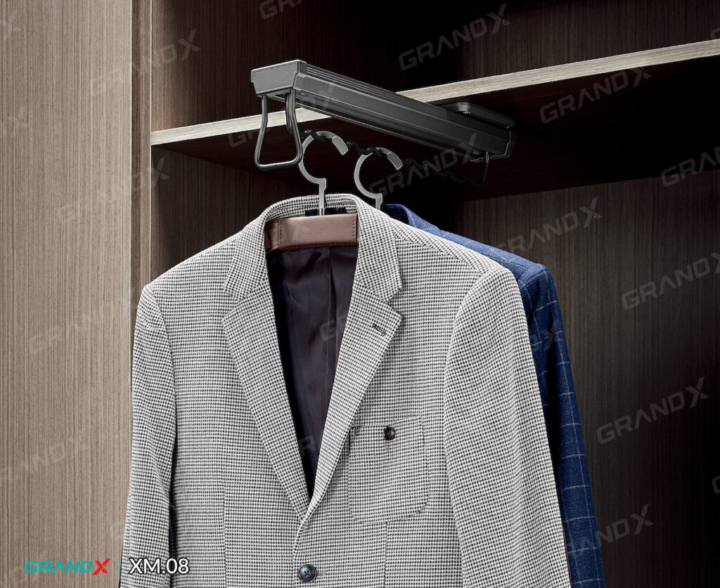- Móc áo treo di động giúp tối ưu hoá được không gian chiều sâu của tủ có thể treo được nhiều bộ vest trong không gian nhỏ hẹp.