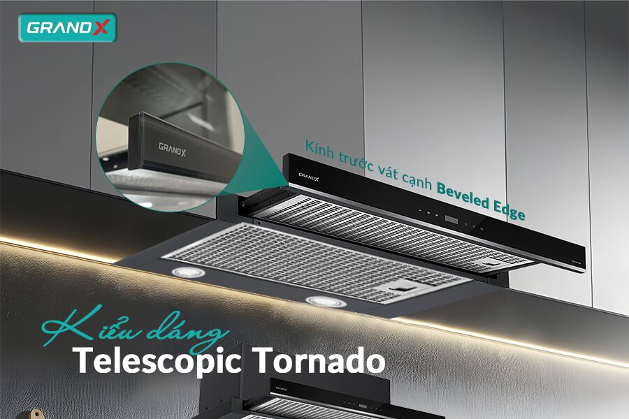 Hút mùi GX H60F58B sở hữu kiểu dáng Telescopic Tornado nhỏ gọn, thiết kế âm tủ linh hoạt, phù hợp với nhiều phong cách bếp từ hiện đại đến cổ điển. Sản phẩm không chỉ tối ưu diện tích lắp đặt mà còn nâng tầm thẩm mỹ cho không gian bếp của bạn.