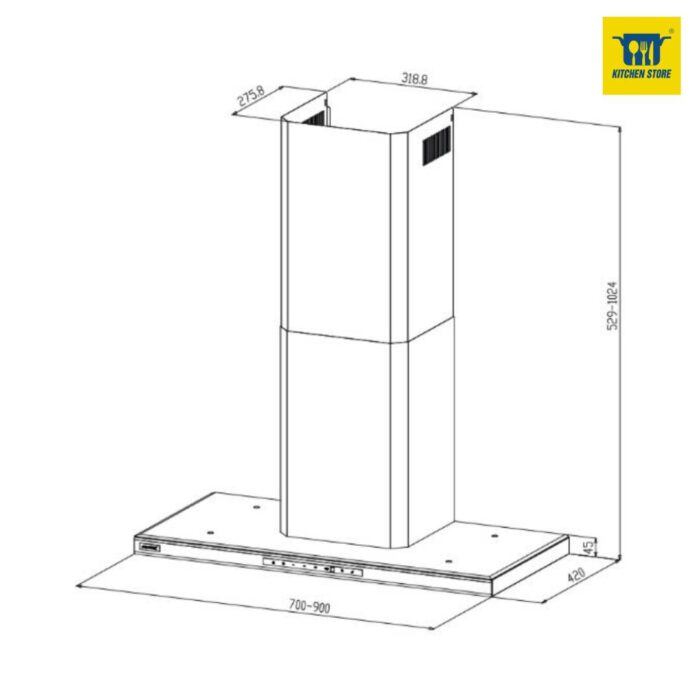 Kích thước sản phẩm R700 * S420 * C529 - 1024 mm