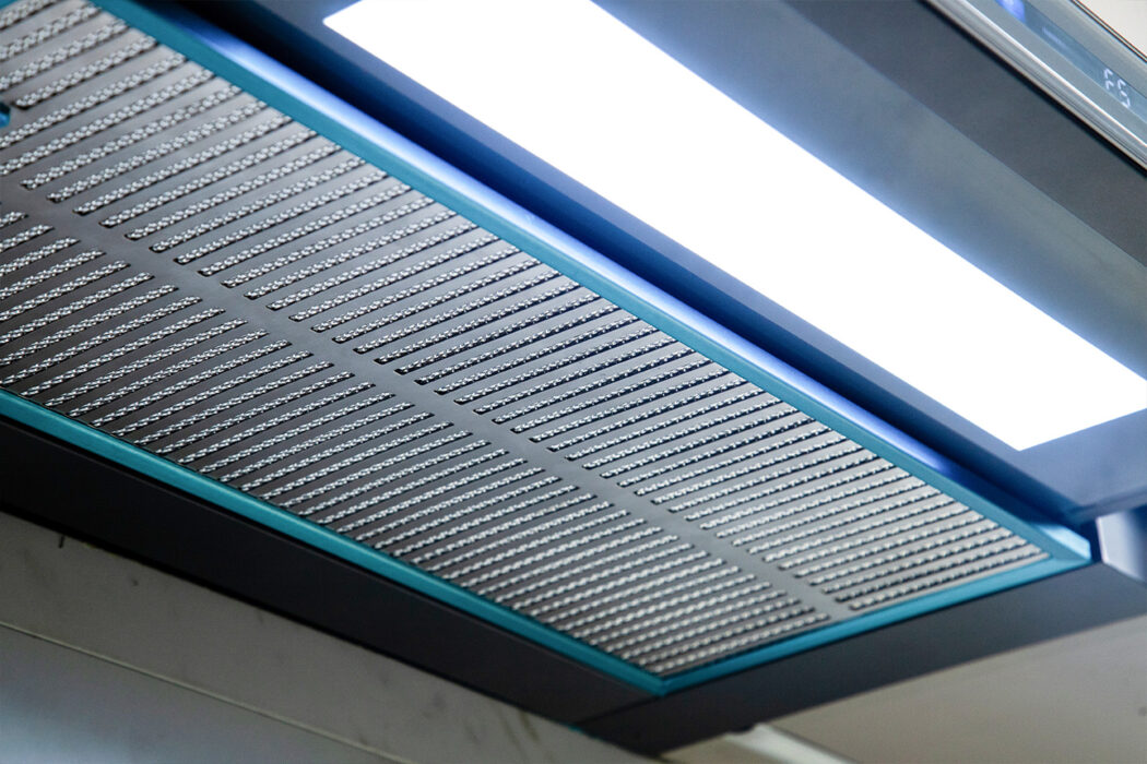 Tấm lưới lọc mỡ được cải tiến với lớp nhôm bên trong giúp giữ lại dầu mỡ không cho chúng đi vào động cơ. Bên ngoài lưới lọc được bao phủ bỡi lớp lưới inox chắc chắn, giúp bảo vệ màng nhôm trong những lần vệ sinh. Điều này sẽ giúp kéo dài tuổi thọ của tấm lưới lọc mỡ được lâu bền. Thường xuyên vệ sinh lưới lọc từ 1 đến 3 tháng nếu thói quen nấu ăn có nhiều dầu mỡ hoặc từ 3 đến 6 tháng nếu thức ăn ít mùi và dầu mỡ