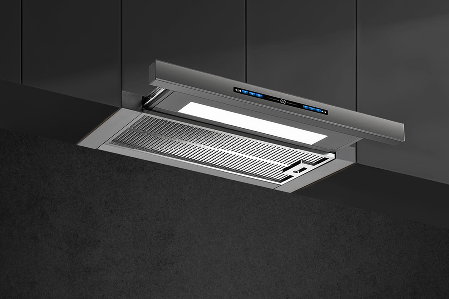 Hệ thống lưới lọc được đẩy ra và thu vào một cách tự động với một Pit-tông chuyên dụng có lực đẩy lên đến 60N mạnh mẽ và tiêu chuẩn chống nước IP44 giúp ngăn ngừa dầu mỡ lâu ngày làm ảnh hưởng đến chuyển động của Pit-tông và hoạt động của máy
