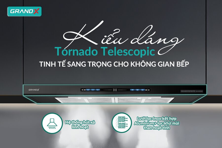 Với kiểu dáng Tornado Telescopic âm tủ, GX H70F85B phù hợp lắp đặt trong mọi kiểu tủ bếp. Hệ thống hút xả kép: hút tuần hoàn và thông gió, giúp lọc sạch mùi hiệu quả dù không có đường ống thoát.