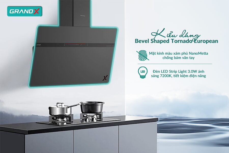 Hút mùi GX H90S86G sở hữu kiểu dáng Bevel Shaped Tornado European độc đáo, mang đậm phong cách châu Âu hiện đại. Thiết kế thanh lịch, đường nét mềm mại cùng cấu trúc vát cạnh tinh xảo giúp sản phẩm trở thành điểm nhấn nổi bật trong gian bếp.