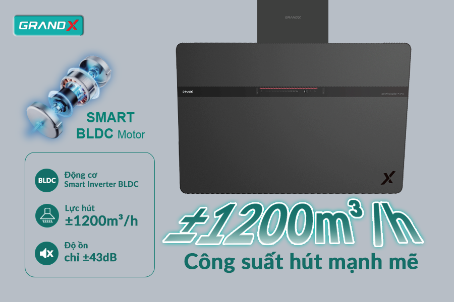 Hút mùi GX H90S86G sở hữu công suất hút ấn tượng ±1200m³/h, giúp loại bỏ nhanh chóng khói, mùi thức ăn và dầu mỡ, mang lại không gian bếp luôn thông thoáng, trong lành và dễ chịu.