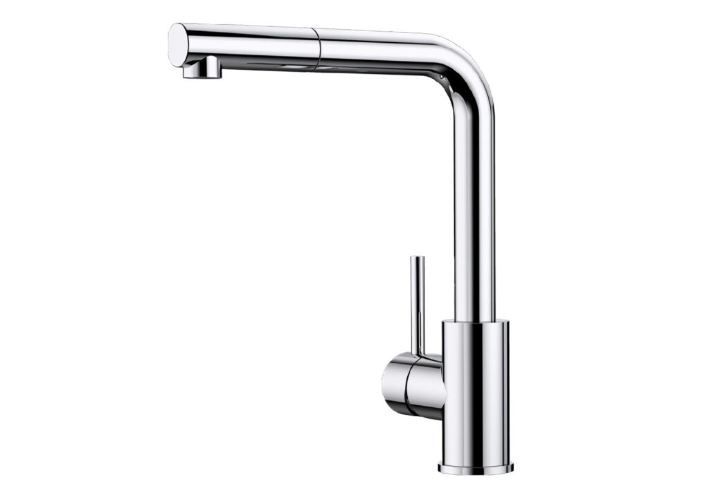 Điểm đặc biệt của mẫu vòi này làthiết kế dây rút linh hoạt (Pull-out spray), giúp người dùng dễ dàng kéo ra – thu vào, xoay chuyển để rửa mọi góc bồn rửa, tiện lợi hơn rất nhiều so với các loại vòi cố định truyền thống.