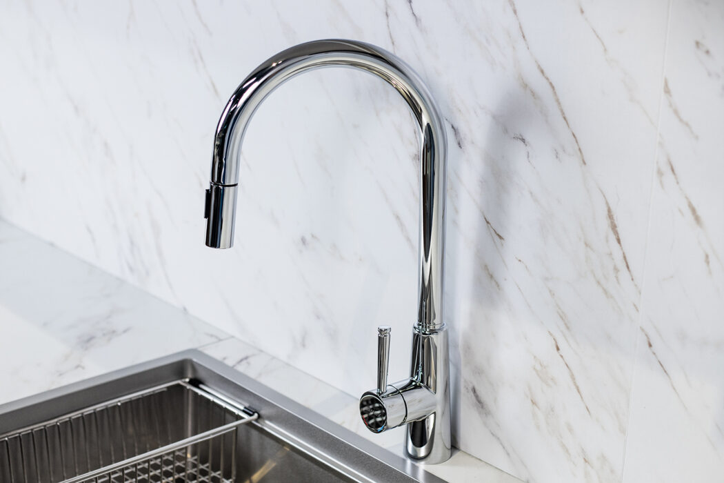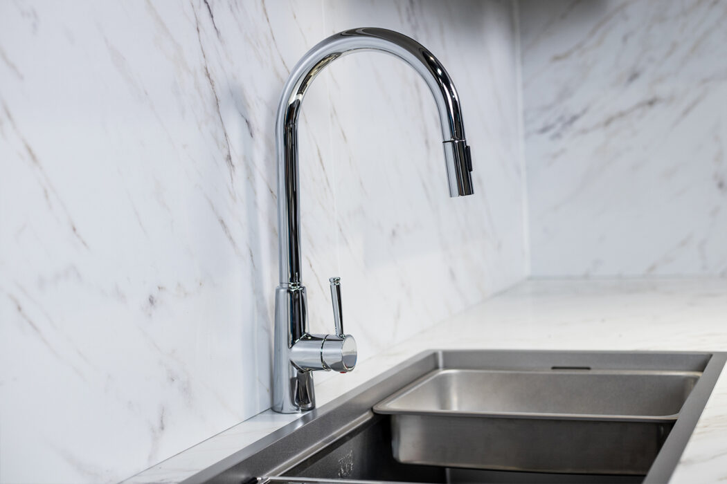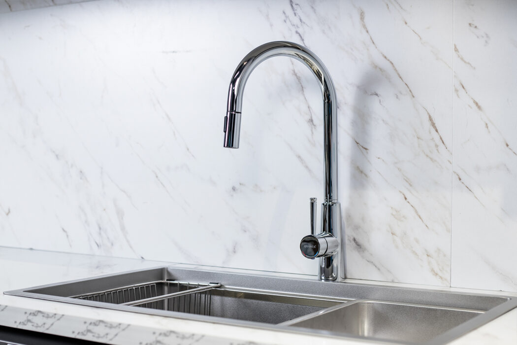 Tăng tính thẩm mỹ cho không gian bếp: Vẻ ngoài hiện đại, bóng mịn và tinh tế mang lại sự sang trọng cho khu vực bồn rửa.